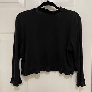 Charter Club Shrug Womens XL Black Open Front Ruffle Edge Elegant 100% Cotton