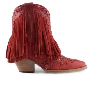 Red Suede Fringe Ankle Boots