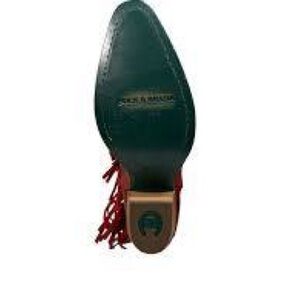 These boots are crafted from genuine leather and feature a vibrant red hue with a distinct bohemian flair. Key design elements include: