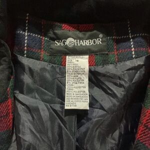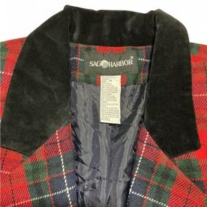 Vintage Sag Harbor Red & Green Plaid Jacket with Black Velvet Collar office