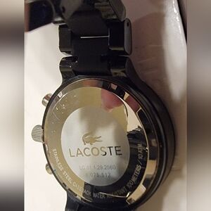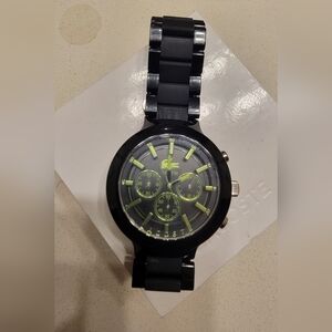 Elegant Lacoste watch with a black band. Features striking green details on the dial. Ideal for versatile wear. (Need a battery)
