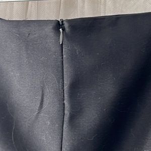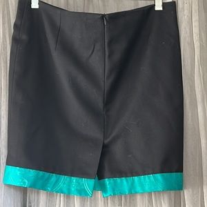 Black business type mini skirt w/a shiny green or cerulean blue or teal satin like lining & trim.