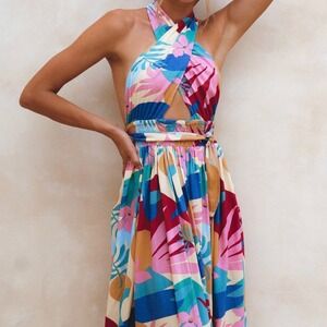 Bali Elf Glowing Hera Infinity Dress, Havana Tropical Print Sz S