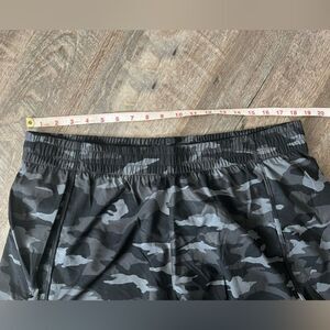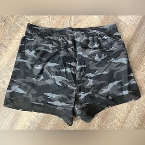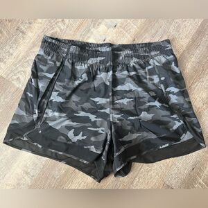 This listing is for a pair of NWOT's Mesh Racer Run Mid Rise 4 Short in black/grey camp, in size 1X. Please see the photos for measurements.