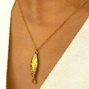 New! Gold Sardine Textured Pendant Necklace (1016) NWOT
