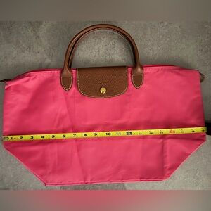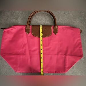 Authentic hot pink Longchamp tote In almost excellent condition, with just two tiny stains on the back of the bag, though they are barely visible. Size medium