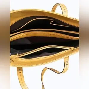 Vintage Kennth Cole - Chic and spacious yellow leather shoulder bag with synthetic interior. Perfect for daily use. Stylish and functional design, with magnetic fold-over closure on top, and multiple zippered pockets and organizing dividers inside. EUC.