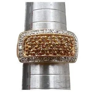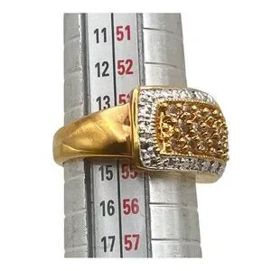 Pave Gold Tone Ring Yellow CZ Silver Tone Accent Size 7 Cocktail Statement 6.62g