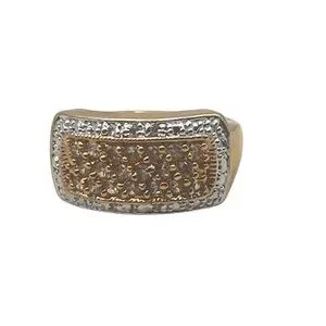 Elegant warm gold-tone ring featuring a rectangular face with white and yellow stones for a bold, stylish look.