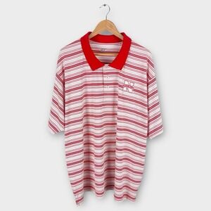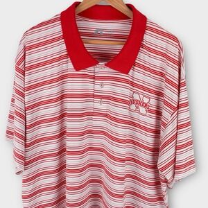 Russell Nebraska Huskers Polo Shirt 3XL Red White Striped Collared Embroidered N