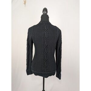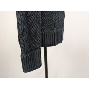 Theory Women's Small Black Heavy Cable Knit V-Neck Wool Blend Sweater