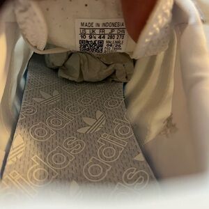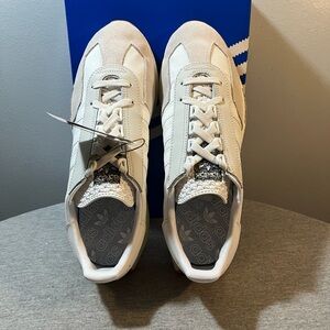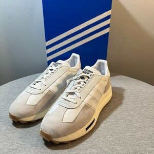 Stylish Adidas sneakers in beige and white. Comfortable and versatile for everyday wear.