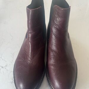 Elegant dark red leather booties. Sturdy sole. Weather resistant.