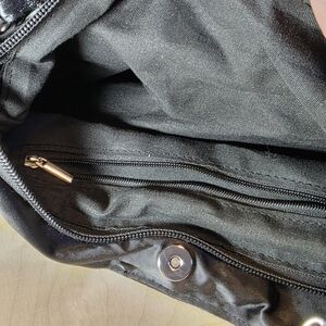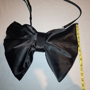 This unique Bam Forever black bow shaped purse is over 12" long amd surprisingly spacious. The perfect statement piece. Its sleek design adds a touch of unique sophistication and originality to your wardrobe. Spacious interior, zipper close. Formal, textured, feminine, black tie, punk, whimsy goth, date night