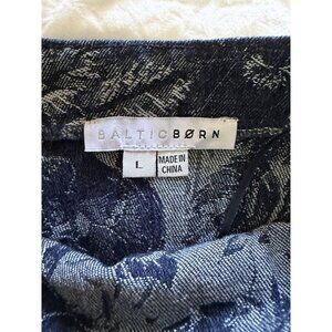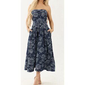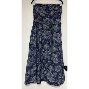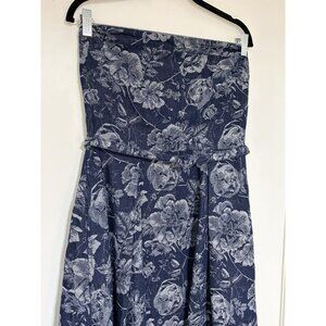 Baltic Born Women’s Jacquard Blue Denim Strapless Belted Printed Dress Size L