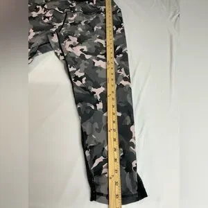 Stylish women's leggings with a camouflage pattern. Features black, gray, and pink colors. Perfect for casual wear.