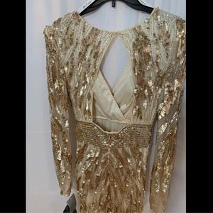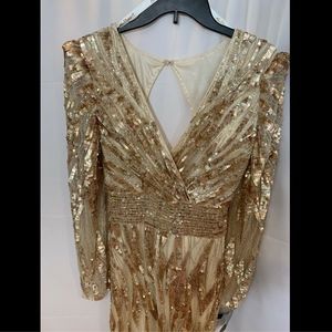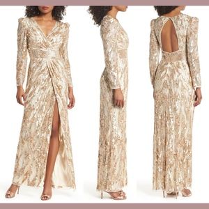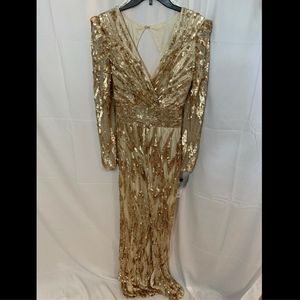NWT $598‎ Mac Duggal V-Neck Mineral Sequin Gown in Gold/RoseGold [SZ 6 ]
