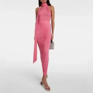 Alex Perry-Stunning rose colored, embellished jersey maxi skirt with ruched detailing. Brand new with tags. Skirt only. Size: USA 8 (UK 12)