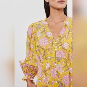 Velvet by Graham & Spencer Mary Dress Size S Yellow Floral Ruffle V Neck EUC