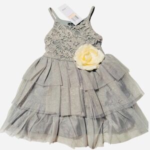 Pink & Violet Toddler Girls Sleeveless Lace Glitter Mesh Dress in Gray Size 2