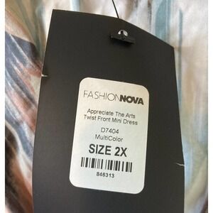 Fashion Nova Appreciate The Arts Twist Front Long Sleeve Mini Dress Size 2X Multicolor Abstract Pattern
