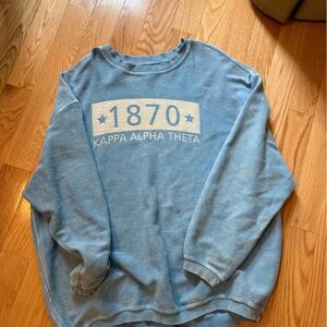 Kappa Alpha Theta crew neck pullover Stay warm and stylish with this blue crewneck women's jacket. Perfect for layering and casual outings.