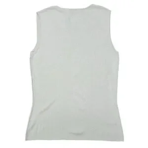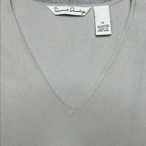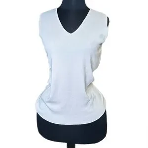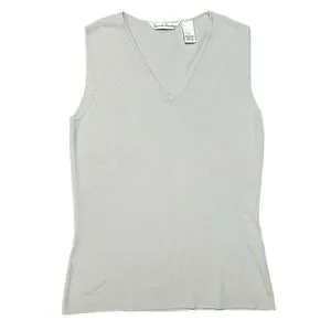 Vintage French Laundry Tan Gray V-Neck Sleeveless Top; Elegant light gray sleeveless top with a V-neck. Ideal for versatile styling - pairs well with high waist style bottoms. There is plenty of stretch to the item. Item has been used and worn a lil more than a handful of times- gently used considering its age. There is a tiny mark on the back of the top as seen in photos. Item does not have mich wear and tear again considering its age; overall the item has plenty of life left.