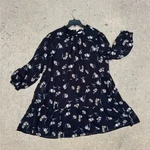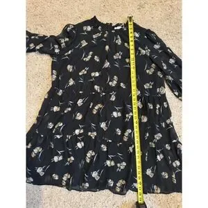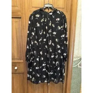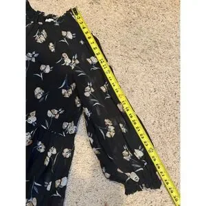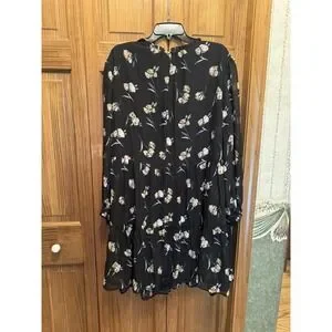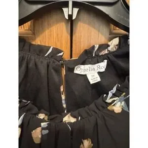 Excellent preowned condition Ophelia Roe Floral Print Black A-Line Dress in 2X size features long sleeves with a balloon sleeve type and a crew neck with a button closure. Made of polyester material with a rayon fabric type, this knee-length dress is perfect for various occasions like travel, weddings, parties, casual outings, formal events, workwear, and business meetings. The floral pattern, ruffle accents, and layered details add a touch of nature-inspired charm to this cottagecore-inspired dress, making it a versatile and stylish choice for multiple seasons including summer, fall, and spring.
