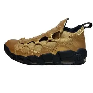 Own the court with these striking Nike Air Money sneakers, shimmering in a luxurious metallic gold. Bold "AIR MONEY" lettering emblazoned across the laceless upper makes a powerful statement, while the iconic Nike Air cushioning ensures unparalleled comfort and support with every stride. The signature dollar sign detail on the heel adds a unique touch of opulence. Perfect for making a statement on and off the basketball court, or for adding a unique flair to your streetwear collection.