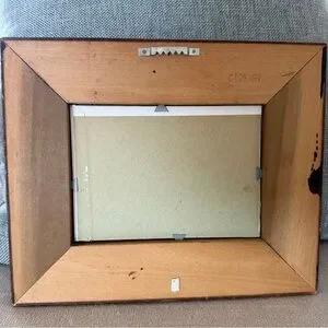 Original acrylic still life painting featuring a bowl of eggs. Set in a rich brown frame. Signed by artist Madelyn Wetherbee.