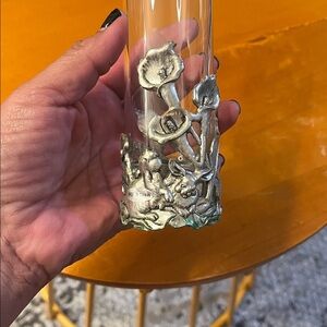 HandCrafted Aluminium Beautiful glass vase featuring a detailed silver floral base. Perfect for adding a touch of elegance to any room.