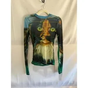 JW Anderson Cat Graphic Multicolor Mesh Top Size S with Fabric Pull MSRP $190