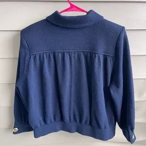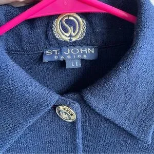 St. John Basics Cardigan Womens L Navy Blue Santana Knit Jacket Sweater Luxury