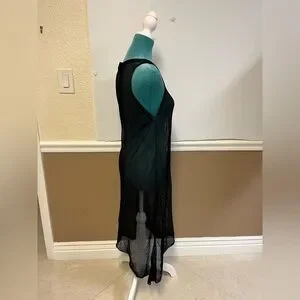 Eileen Fisher dress, black mesh dress, sleeveless minimalist, crinkle mesh, travel dress, sheer black dress, layering piece, eco conscious, size S
