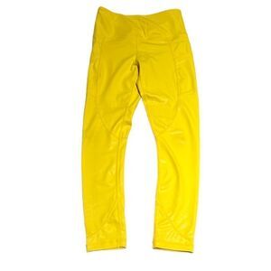 ZYIA Active Neon Yellow Metallic Light N Tight High Rise Pocket Leggings C34