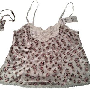 Vintage JC Penney Adonna Bra Camisole Tank Top Set 34C Pink Rose Satin Lace NEW