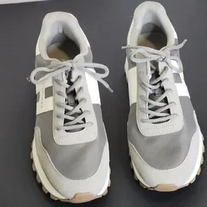 Stylish Tommy Hilfiger men's shoes. Features gray and white design. Comfortable and trendy.like New condition
