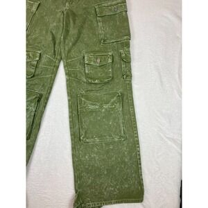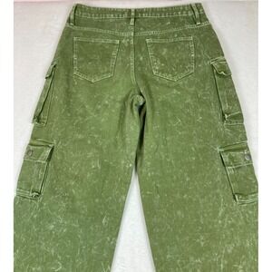 Fashion Nova Women's Junior Size 11 Green Cargo Jeans Hip Hop Skater Wide Leg good used condition see photos for details and measurements