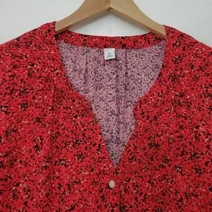 Old Navy Women's 3/4 Button Red Floral Balloon Sleeve Lightweight Blouse XXL