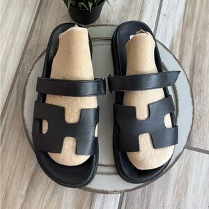 Measurements (approximate): Insole length estimated ~ 8½″ for US 3.5 (buyer should measure); heel/footbed height approx flat/slight platform as shown in photos; strap adjustable for secure fit