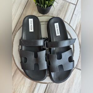 Steve Madden Mayven Slide Sandal Women’s 9.5 Black Leather Adjustable Strap