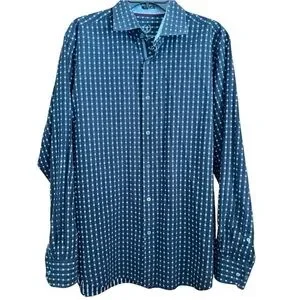 Bugatchi Uomo Classic Fit Navy Blue Print Button Down Size L