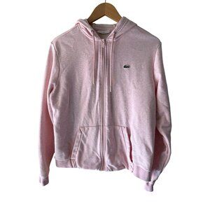 Lacoste Sport Womens Zipper Up Hoodie Size 42 Pink Drawstring Pockets Sporty