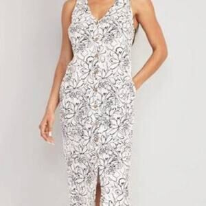 Old Navy Sleeveless Button-Front Linen-Blend Midi Shift Dress Size XXL