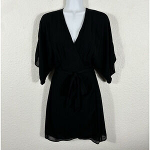 Reformation Wrap Top Size S Black Viscose Shirt Sleeve