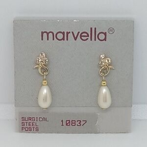 👍 5 for $20 vintage Marvella rhinestone & faux pearl drop earrings on card