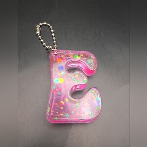 ✨ Handmade Neon Pink Glitter Resin Letter "E" Keychain ✨
