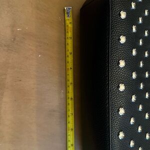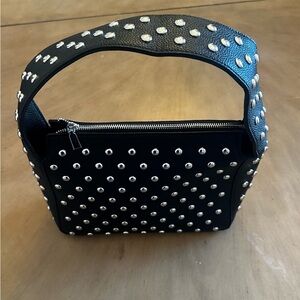 Chic and stylish studded black shoulder bag, perfect for any occasion. Features a sleek design with Polished silver-tone studs, secure zip closure. Zipper pocket on the inside. It’s can hold all your essentials. No tags or labels. Never used.