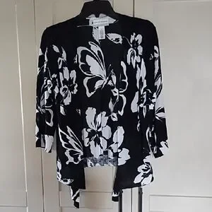 Alfred Dunner Black and White Leaf Pattern Sweater