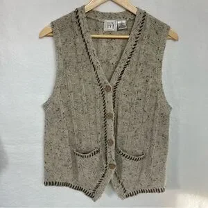 IVY Speckled Knit Sweater Vest Rustic Buttons Pockets Cottagecore L